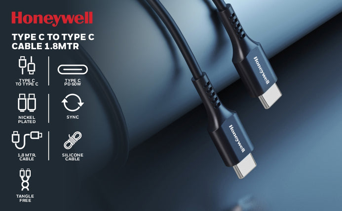 - Honeywell Type C to Type C USB 3.1 cable 1.8Mtr - Black(HC000048/CBL/SLC/1.8M/BLK)