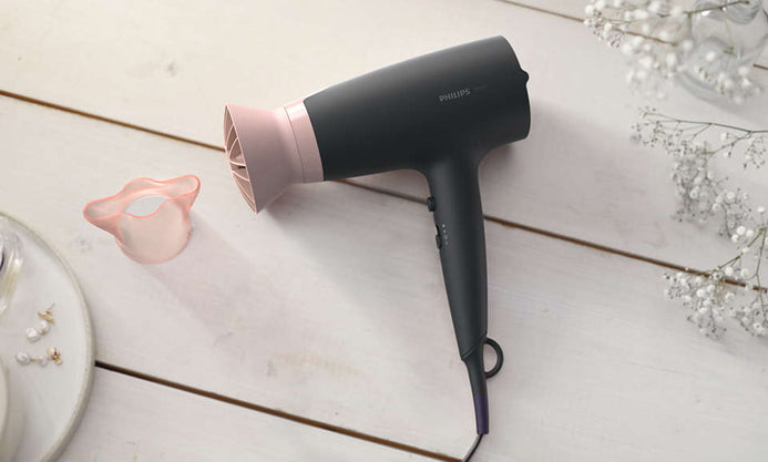 The uniquely-designed ThermoProtect attachment powerfully mixes warm and cool air for everyday care. It drops the temperature by 15°C while still drying your hair quickly.