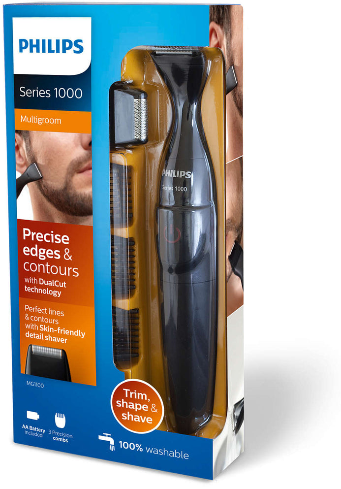 The Philips MULTIGROOM Series 1000 gives power & precision to trim, shape & shave facial hair. Trim & shape your beard evenly with the advanced DualCut trimmer & the combs. Define precise lines, edges & contours with the detail shaver.