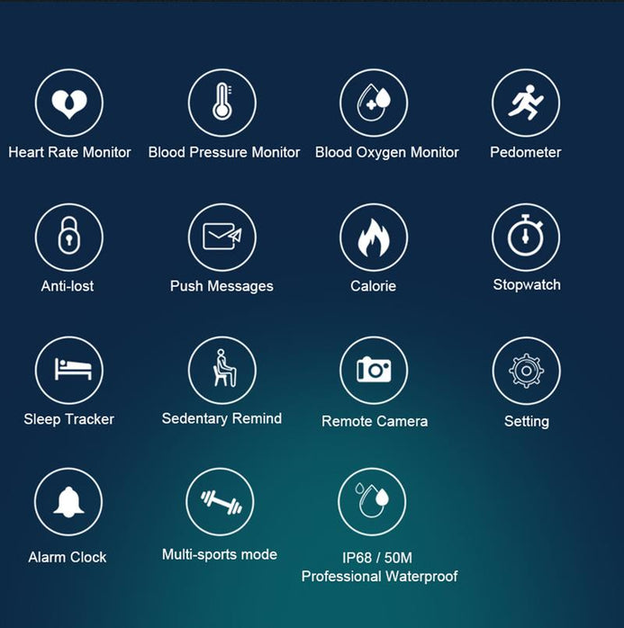- Sports: All-Day Activity Tracking, IP67 waterproof, 8 Exercise Modes, Stopwatch, Sports Data Report.